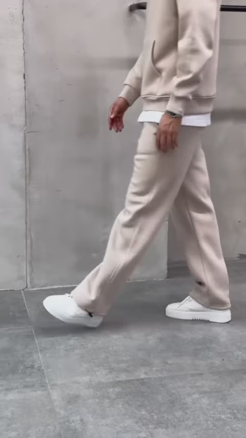Ensemble jogging 2 pièces (hoodie + pantalon) au style minimal, pensé pour un look streetwear propre et confortable au quotidien.